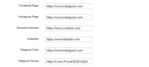 This section helps you display your institute’s social media pages on the Testpress login dashboard, making it easy for learners to connect with you on platforms like Facebook, Instagram, YouTube, LinkedIn, and Telegram.