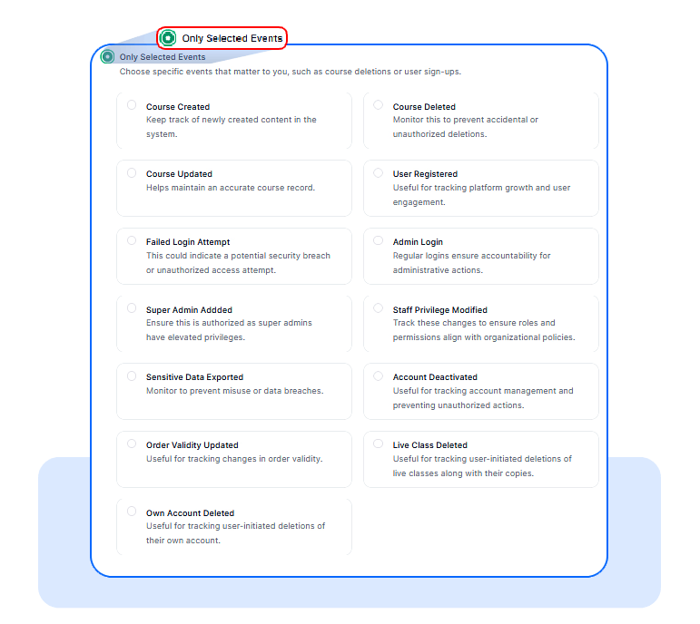 Recommended if you want full visibility into security-related activity.