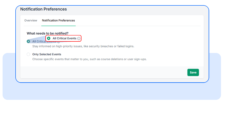 Once you’ve selected your preferred notification option, click Save.The changes are applied immediately.